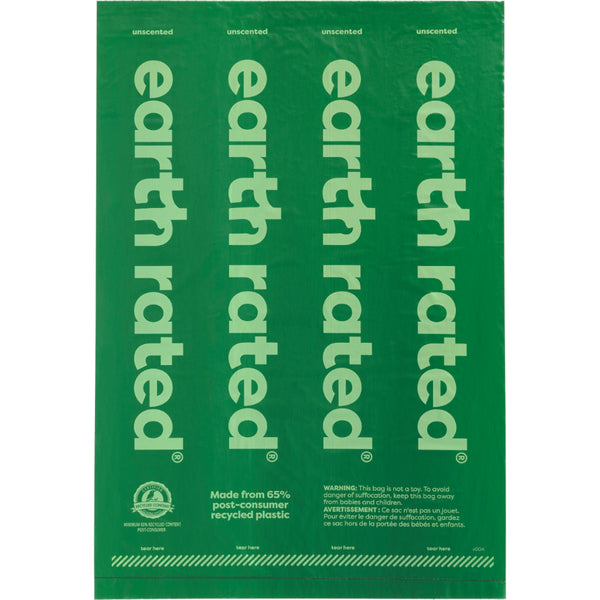 - A BETTER POOP BAG: Earth Rated make their dog poop bags with 65% certified post-consumer recycled plastic, giving a second life to over 5 million pounds/2.2 million kg of landfill-bound plastic a year.