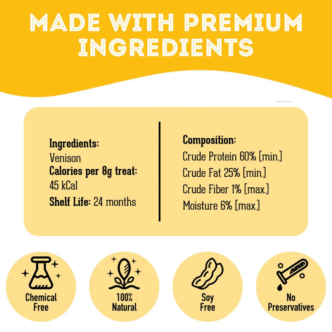 - Made from 100% venison, a lean and healthy single-ingredient protein source