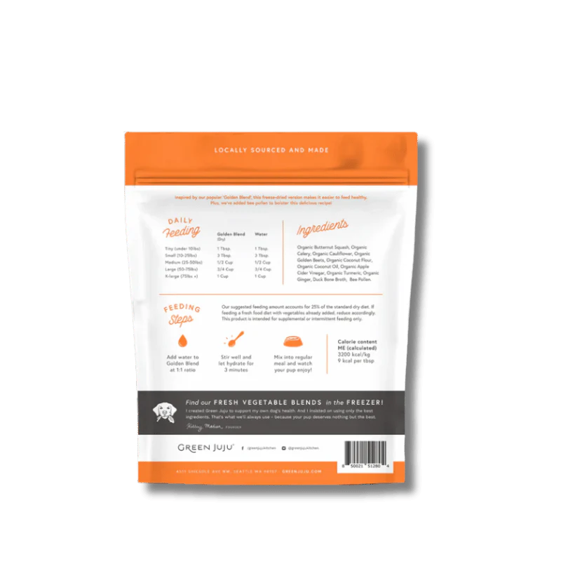 Natural anti-inflammatory support for dogs and cats, our Freeze-Dried Golden Blend with Bee Pollen makes it easy to add nutrient-dense superfoods to your pet’s daily routine.