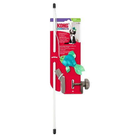 KONG Connects Angler Door Teaser Cat Toy ensures your cat has a catch of the day, every day! The fish at the end of the Teaser wand pole dangles and swings from a shiny elastic line, enticing instinctual batting, swatting, and capturing fun. The plush fish is filled with KONG Premium North American Catnip and crinkle paper to extend and energize play sessions. Attach the toy to the bottom of your door, connect the Teaser wand pole, and your cat will have hours of solo entertainment and daily exercise. Fits most doors for movable variety of play environments, keeping your cat curious and the hunt for the daily catch exciting.