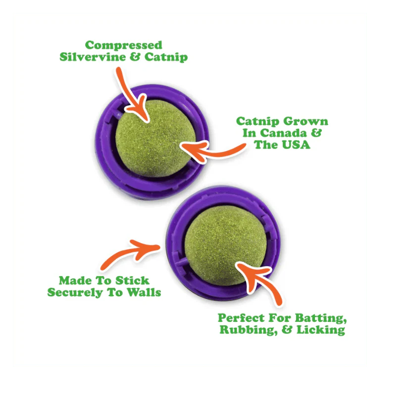 Stick, lick, and let the good times roll. The Purrple Passion Stick 'n' Lick Compressed Catnip 2-Pack delivers a premium blend of catnip and silvervine that is perfect for turning even the calmest kitty into a playful lovebug. Designed to stick to most walls or smooth surfaces, these compressed balls create an exciting and accessible sensory zone that invites licking, cheek rubbing, and batting from every angle. The stimulating combination of catnip and silvervine engages your cat’s natural instincts while promoting active play and mental enrichment. Even cats who usually ignore catnip will find these toys irresistible. With two balls included in every pack, your cat gets double the delight and plenty of purrs. Give your feline friend the ultimate treat with Purrple Passion and watch the fun unfold.