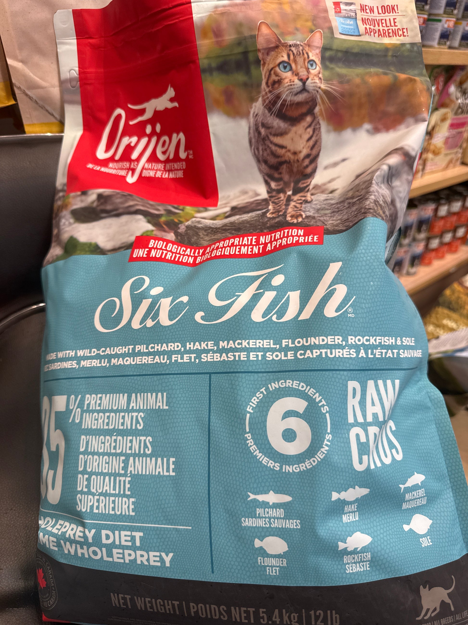 ORIJEN Six Fish Wild-Caught Pilchard, Hake, Mackerel, Flounder, Rockfish & Sole Cat Food is perfect for your cat because all cats anatomically require a diet rich in whole animal ingredients. ORIJEN Six Fish is brimming with meat, organs, and bone from fresh pilchard, hake, mackerel, flounder, rockfish, and sole, wild-caught from Canada's Pacific. Two-thirds of the animal ingredients are FRESH or RAW, for a concentrated source of protein. With richly nourishing protein and packed with nutrients, ORIJEN Six Fish gives your cat the diet they have evolved to eat with a flavour they crave.