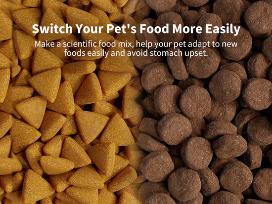 - Innovated double hoppers that dispense various types of pet foods and offer your pet various dietary options.