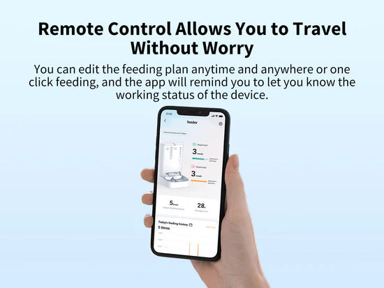 Also, you never have to worry about the food getting stuck inside as it is designed to always ensure a constant/stable dispensing system. Allows for app control & health data monitoring and customised feeding plans. Feeding your pet right on schedule is never going to be a problem.
