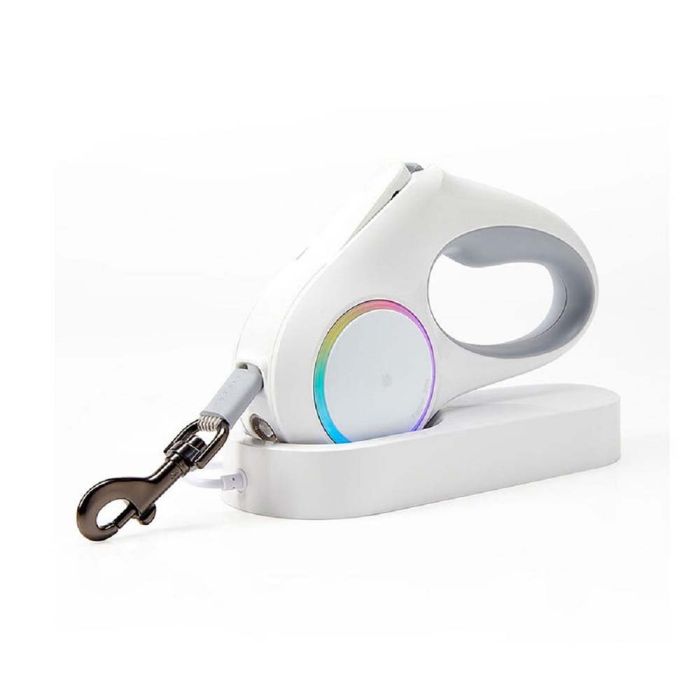 PETKIT streamer telescopic traction rope MAX: rope length from 3m to 4.5m, internal structure upgrade, new magnetic contact charging base, front spotlight headlamp. You certainly won't go unnoticed in the park with its multi-colored rings of light and fantastic headlamp-style light that gives you greater visibility on your nighttime walks.