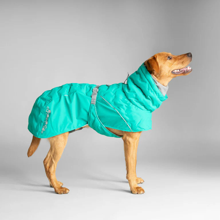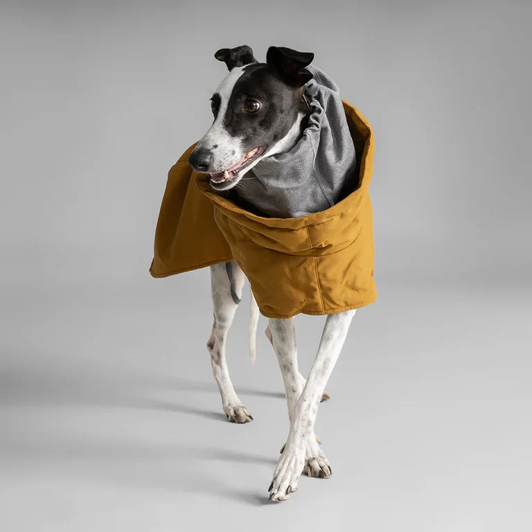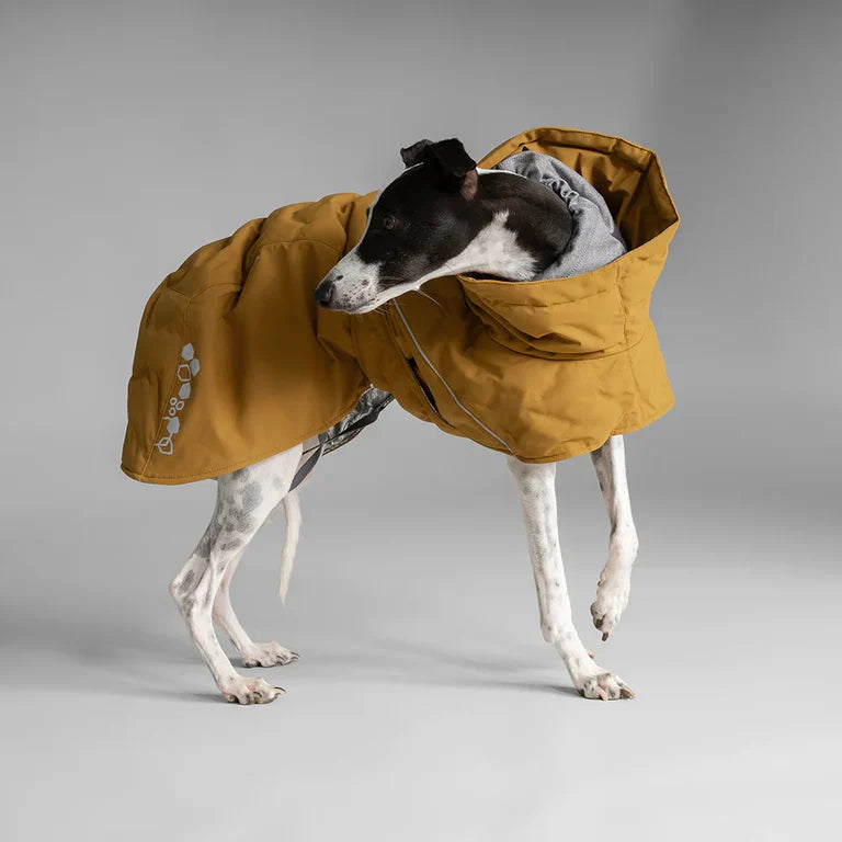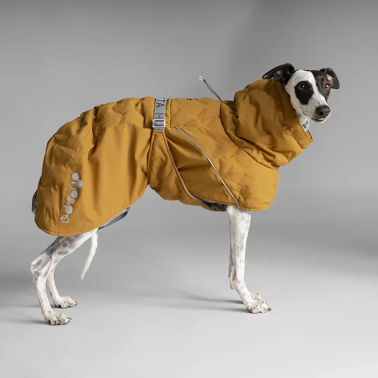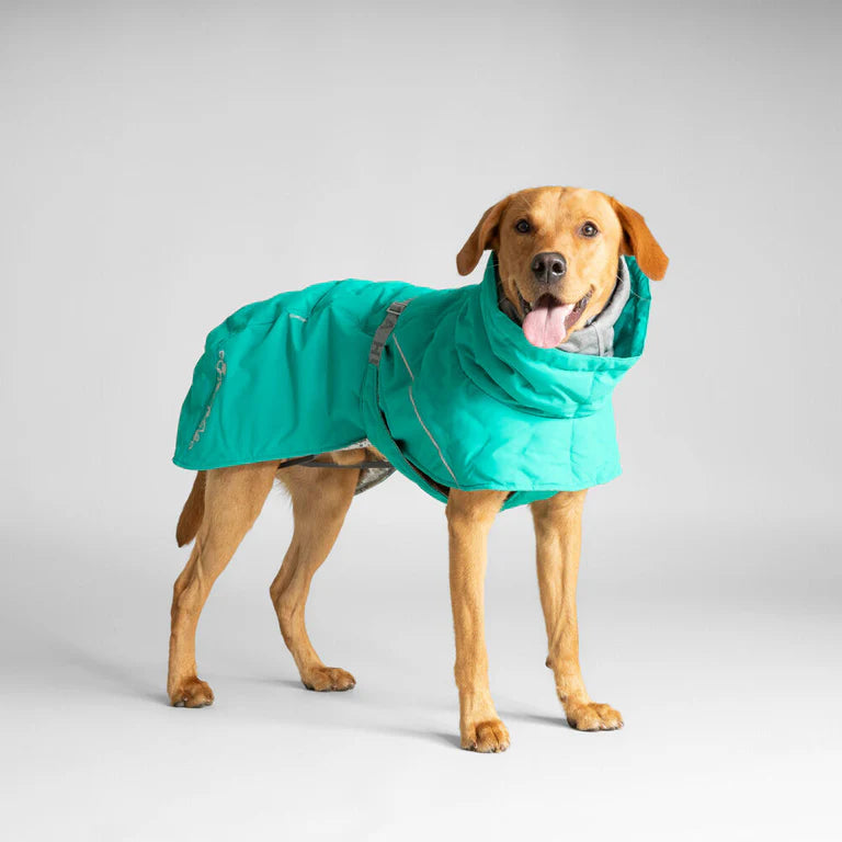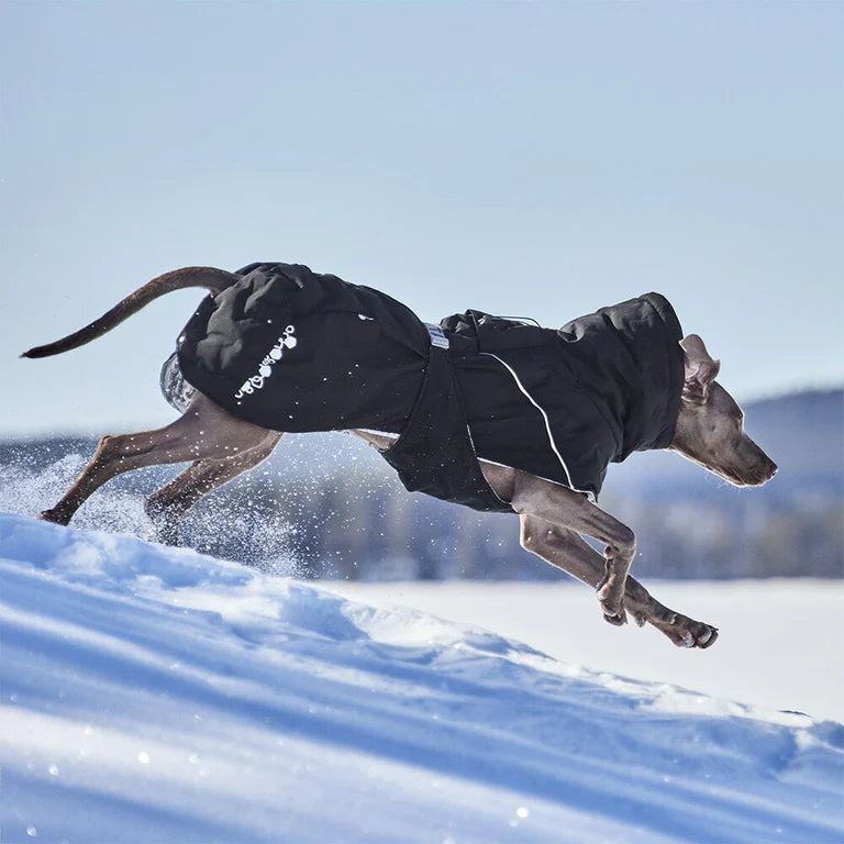The revamped design offers greater adjustability and an improved fit that allows for your dog’s natural movements. The thermal jacket shields your dog’s coat well, much like a superhero’s costume, blocking blustery wind gusts. The soft, high tricot hood protects and warms the dog's neck and ears.