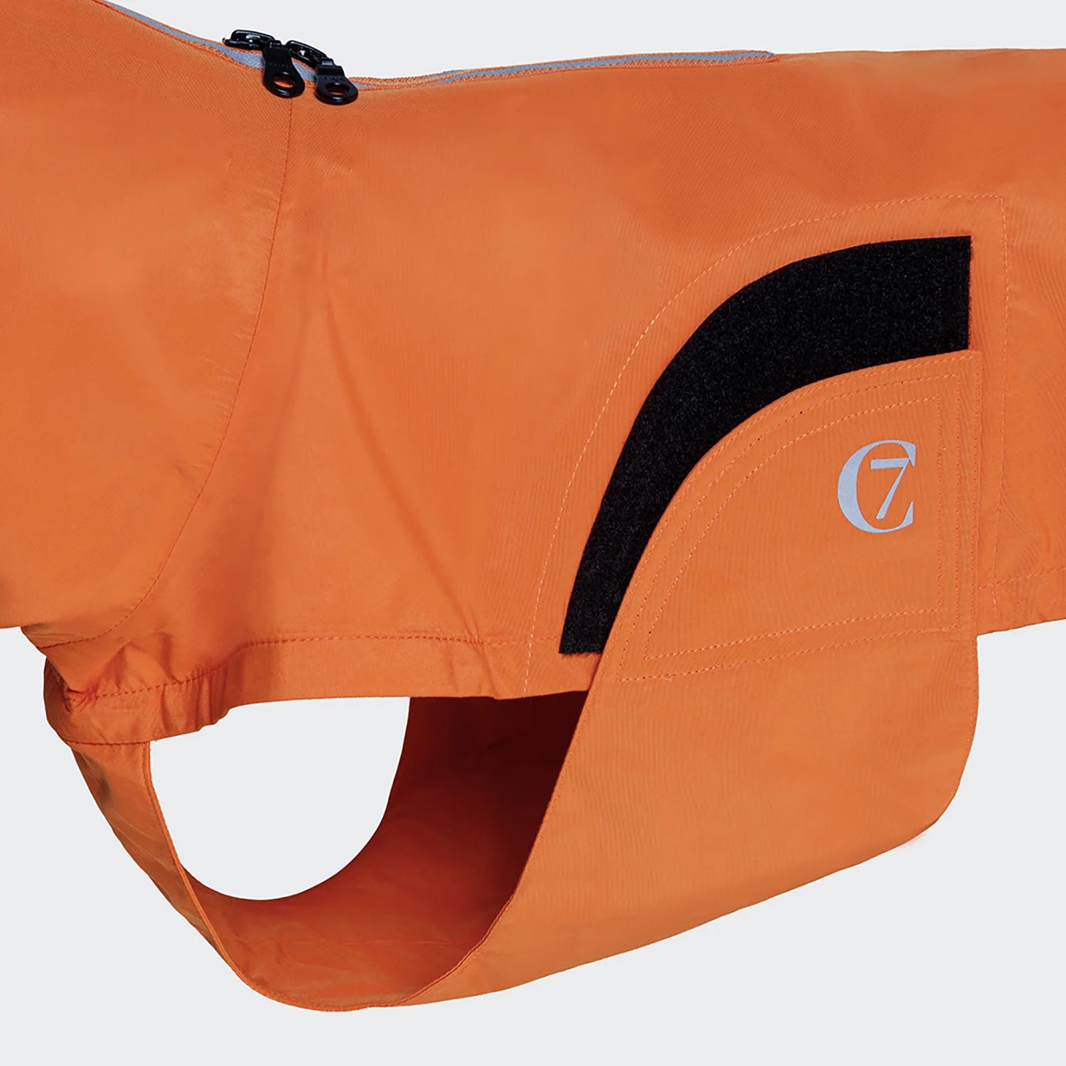 Waterproof raincoat for Frenchies with soft velvety feel in bright orange. Made with high percentage of recycled materials.