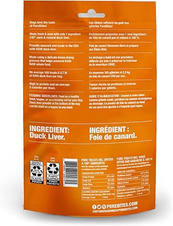 - Made fresh & pure, using a delicate freeze drying process that helps preserve fresh RAW whole food; with 0.25lb of RAW duck liver and 110 treats per 1.05oz bag, our bags are packed with more protein and nutrients