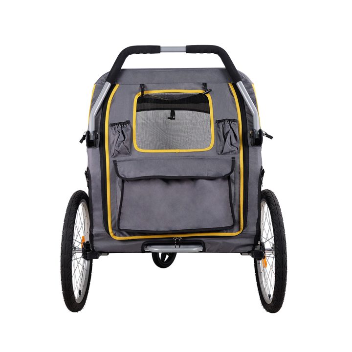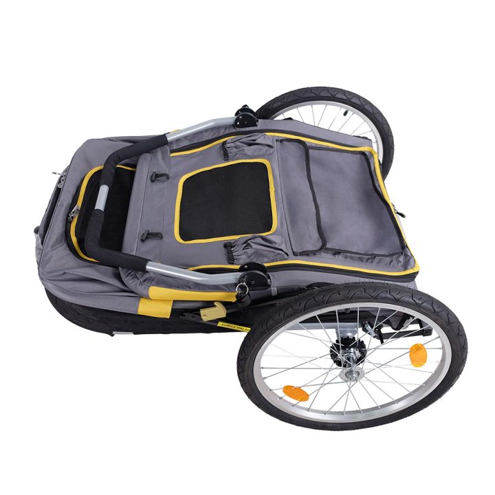 MUST-HAVE SAFETY FEATURES:?Designed with auto-lock sliders that prevent your pet from accidentally unzipping the zippers. Includes safety tethers, quick brakes, and reflectors in the spokes to protect you and your pet during dark conditions.