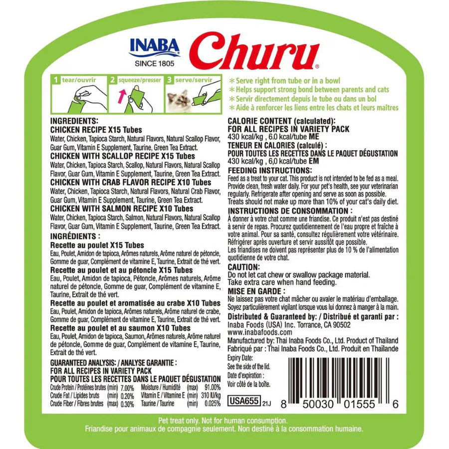 - FUN AND FUNCTIONAL: Like our original Inaba Churu Cat Treats, these tubes are a low-calorie treat that helps with hydration. But we've also packed them with Omega-3 fatty acids from fish oil to help maintain healthy skin and a shiny coat