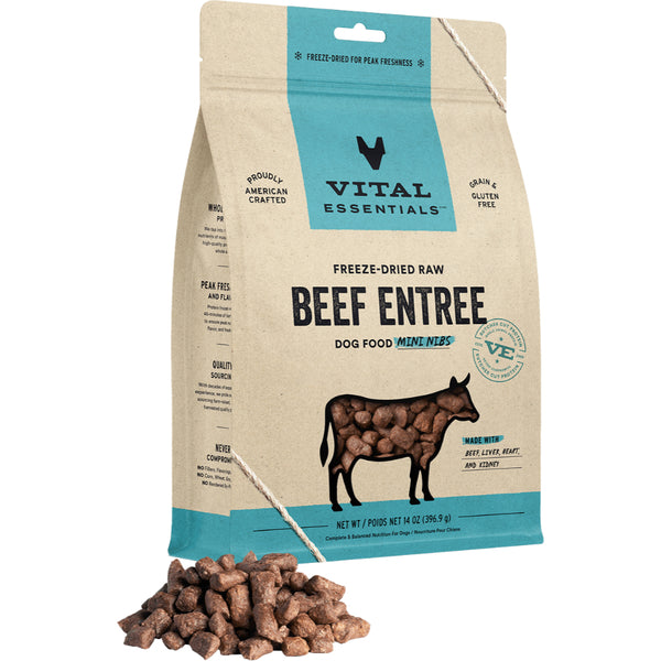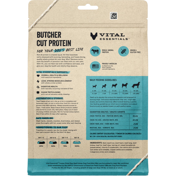 When it comes to feeding your dog a raw diet, butcher cut protein provides superior benefits. And Vital Essentials freeze-dried raw mini nibs are the best way to pack tons of responsibly sourced and humanely harvested whole animal protein into every bite, making feeding a raw diet at mealtimes a breeze. The naturally occurring vitamins and minerals found in butcher cut protein builds strong muscles for more play, naturally supports digestive and oral health, and provides essential nutrients for dogs to look and feel their best.