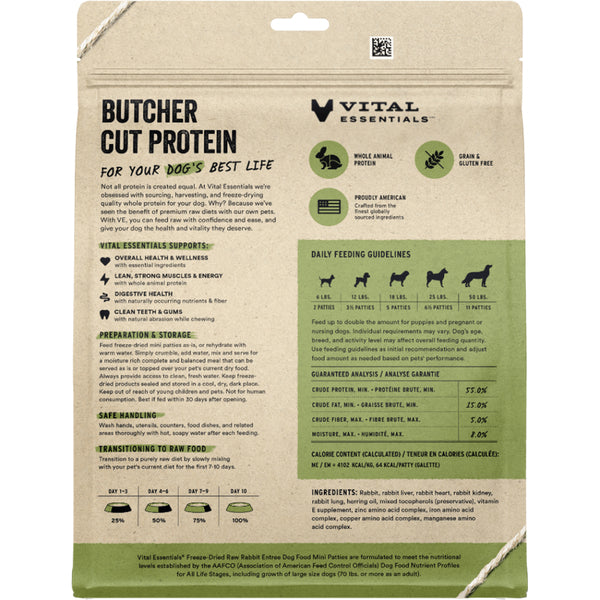 Vital Essentials Raw Rabbit Entree Mini Patties 14OZ